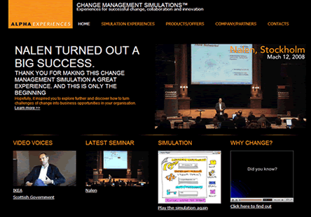 - Change Management Simulations™: Experiences for successful change, collaboration and innovation - Stockholm, Sweden, September 1st, 2009
