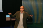 Dr. Florian Schloderer, CALT Research Fellow in Abu Dhabi, presents, on behalf of Professor Angehrn, an overview of CALT's pedagogical approach of "learning by playing," entitled: "Innovation & Collaboration 2.0"